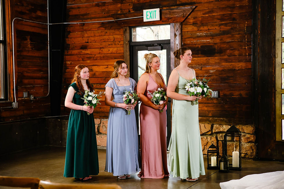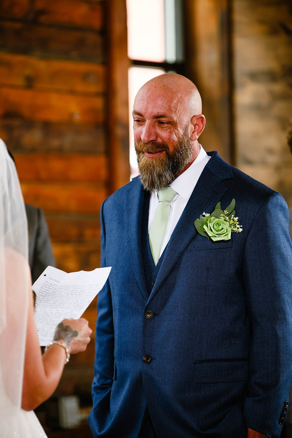 Knot & Pine is often described as rustic‑meets‑modern, but what stood out to me most during this wedding was its rich, moody atmosphere. The soaring ceilings, historic structure, and warm wood textures create an incredibly romantic environment—especially for intimate weddings like this one.